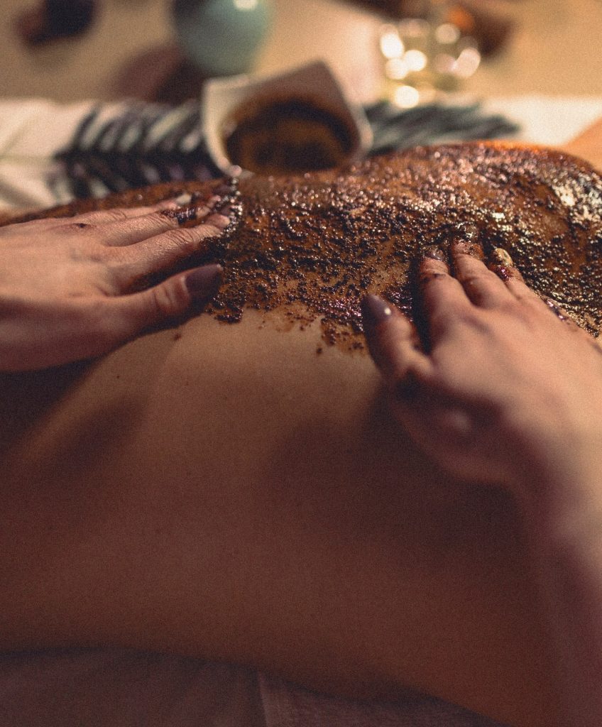 - Gommage corps + enveloppement + massage de 1h : 1h45 – 115€